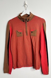 JAMIE SADOCK Womens Orange Striped Golf Top 1/4 Zip Size Large Silk Blend