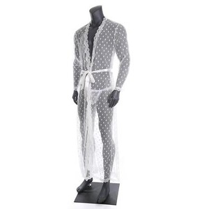Men Lace Robe Gown Bathrobe Sissy Nightwear See Through Underwear Pajamas