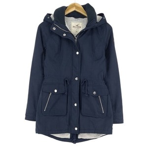 Hollister Women Long Jacket Blue Hooded Casual Ue0 Size XS