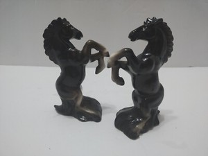 Vintage Horse Salt Pepper Shakers Rearing Up Japan Black W/ White Painted Eyes