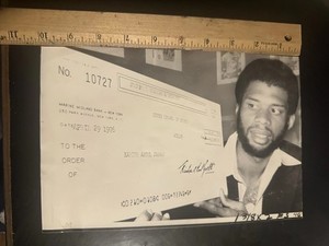1976 Kareem Abdul-Jabbar Type 1 Original Photo 8x10in Receives Giant NBA check