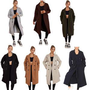 Women’s Double-Breasted Notch Lapel Long Coat Thermal Waist Tie Overcoat