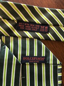 100% ITALIAN SILK VARIOUS GREENS STRIPED DOLCEPUNTA MEN'S CLASSIC TIE-FLAWLESS