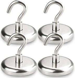 Strong Magnetic Hooks Up to 100 LBS Heavy Duty Neodymium Magnet Hook Pack of 4