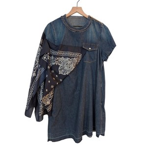 Sacai Bandana Print Scarf Accent Denim Tunic Dress JP2