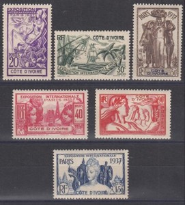 IVORY COAST STAMP EXPO SERIES 1937 No. 133/138 NEW * RUBBER TRACE HINGE