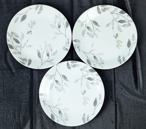Set 3 Corelle Misty Leaves 8-1/2" Salad/Luncheon Plates Gray Leaf Branch Coupe