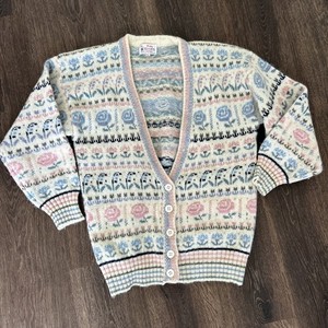 VTG Wool Cardigan Floral Fair Isle Feminine Cottagecore Grandmacore