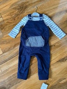 BOYS NAVY BLUE & WHITE COTTON ROMPER & TOP SET - AGE 6-9 MONTHS - WITH TAGS