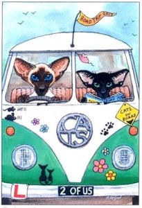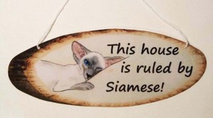Siamese cat art sign laminated card from original painting by Suzanne Le Good