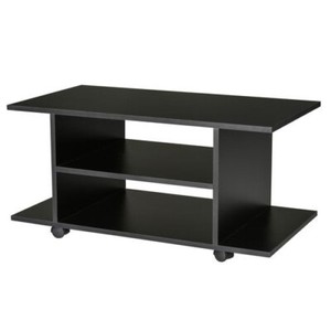 Rolling TV Stand Storage Shelves Console Coffee Table on Wheels Wooden Black New