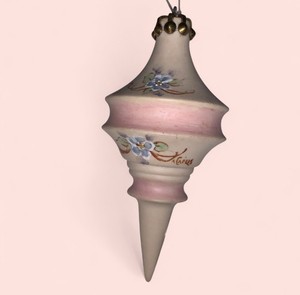 “Rhyn Rivet” Style Pastel Floral- Porcelain Christmas Ornament Blue Floral
