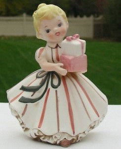 Vintage Birthday Present Girl Lefton 2570 Porcelain Figure Ceramic Japan Belle