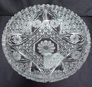 ABP American Brilliant Cut Glass Low Bowl 9 7/8" Sawtooth Floral Buttons Antique