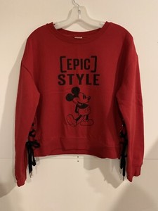 Disney Mickey Mouse Women's Red Sweatshirt "Epic Style" w/ Laced Sides~ Large