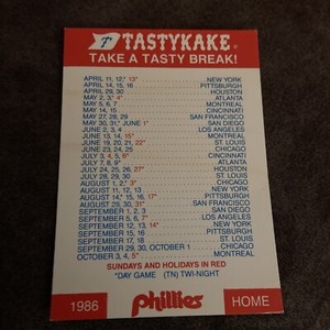 1986 PHILADELPHIA PHILLIES BASEBALL POCKET SCHEDULE -Tastykake