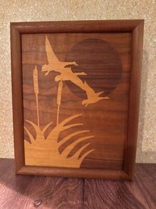 Vintage Inlay Flying Geese Wood Picture – Framed & Beautifully Crafted 🪵🦆