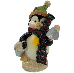 Christmas Penguin Figurine with Scarf & Shovel Holiday Winter Decor Whimsical