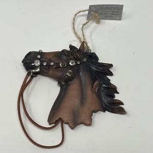 Brown Horse Head Black Mane Christmas Ornament 3.5” Resin New