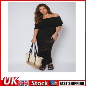 Knit Crochet Off Shoulder Maxi Dress ONE SIZE (8 - 16) Black White Khaki Beige