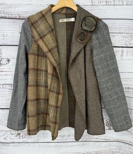 Cameleon Women’s Small 100% Wool Patchwork Blazer Appliqué Open Jacket Artsy VTG