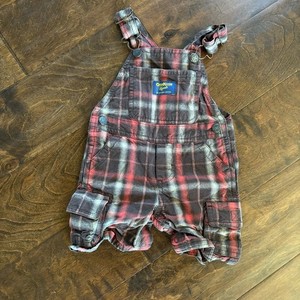 Oshkosh Boys 9 months Shortalls Brown Plaid Overall Shorts