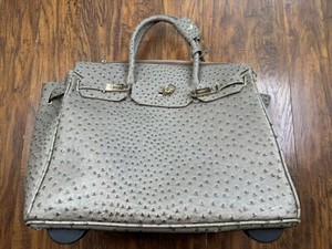 KC Jagger Leather Faux Ostrich Print Wheeled Rolling Bag Travel Luggage Vegan