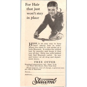 Stacomb Hair Comb for Kids Standard Laboratories 1924 Magazine Ad AF7-LJ1