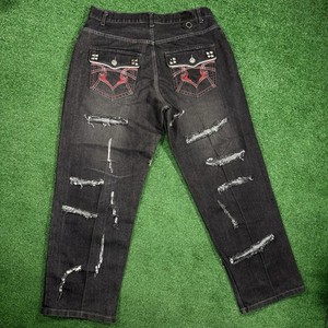 Red Ape Jeans Co Black Distressed Denim Pants Men’s 36 Heavy Destroyed Baggy Y2K