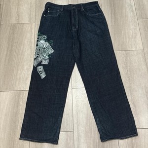 Vintage 90s Ecko Unltd Black Jeans Baggy Fit Embroidered Money Rhino Size 38