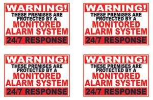 4 x WARNING Premises Monitored 24/7 Alarm Sign Self Adhesive Backed Stickers £2.99 to £7.99Save up to 15% with Multi-buy