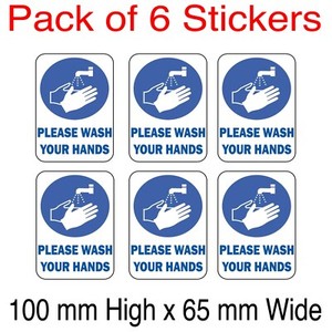 6 x PLEASE WASH YOUR HANDS sticker sign - choice 4 sizes - Self Adhesive Back £3.99Save up to 15% with Multi-buy