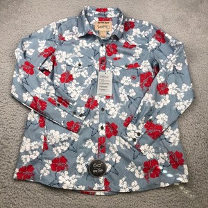Ariat x Western Aloha Shirt Womens L Blue Floral Longhorn Print NEW NWT