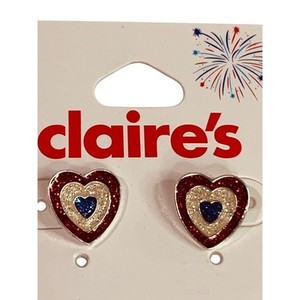 Claires New Post Pierced Earrings Patriotic Sparkly Heart