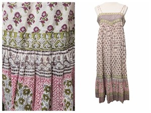 Anokhi Womens Size L Bohemian Printed Spaghetti Strap 100% Cotton Midi Sundress