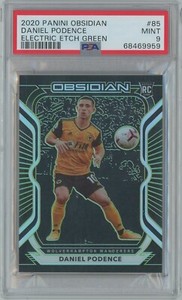 2020-21 Panini Obsidian EPL Daniel Podence RC Electric Etch Green /25 PSA 9