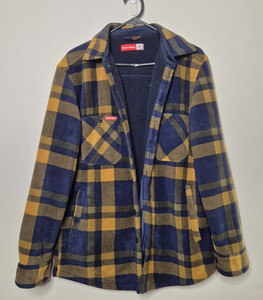 Hard Yakka Buffalo Check Fleece Trucker Shirt Jacket Size S Blue & Brown