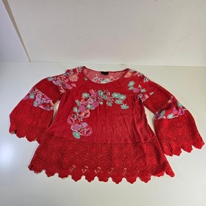 Curations Red Embroidered Crochet Blouse Size M – Boho, Bell Sleeve, Festival