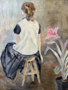 Vintage Original Oil Painting of a Young Woman Seated on a Stool Signed Framed