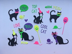 Cat Die Cut Shapes - Cardmaking, Scrapbooking, Assorted Colours (set of 16)