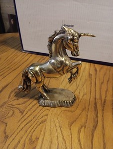 Vintage Antique Solid Brass Unicorn Horse Figurine Statue