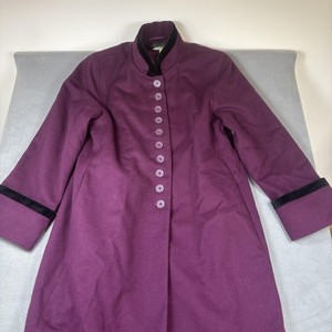 VTG Harve Benard Coat Womens 12 Purple Long Wool Button Front Velvet Trim