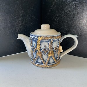 Swineside Teapot England Teapottery Gilding Blue Signed Britain