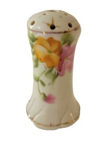Vintage Hat Pin Holder Hand Painted Floral Gold Trim Ceramic