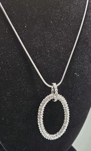 Park Lane? Unmarked Silver Tone Oval Necklace 20" Clear CZ Cubic Zirconia Pave
