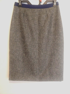 Boden British Tweed Skirt Lined Herringbone Academia 100% Wool Gray Blue Band 4R