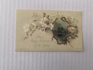 Vintage 4.25”x 2.75” Pink Flower Ephemera Christmas Message Card Unused Paper