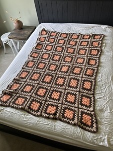Handmade Crochet Vintage Granny Square Afghan Floral Blanket Throw Mcm 64x48