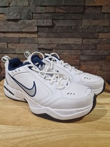 Nike Air Monarch IV Trainers Men's UK 10 White Blue Leather Comfort Sneakers