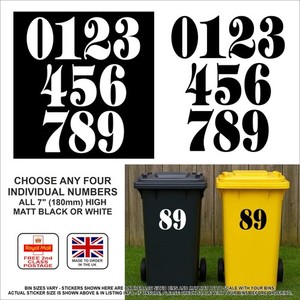 Set of 4 Wheelie Bin Number Stickers - 7" Height - Weatherproof- White or Black £3.75Save up to 20% with Multi-buy